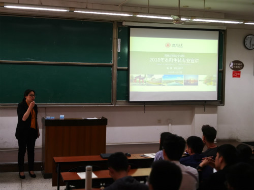 2018年4月17日中午12:30,K1体育2018年本科转专业宣讲会在一教B座101举行。副经理秦燕老师、副经理杨频教授、辅导员黎红友老师出席了本次宣讲会。