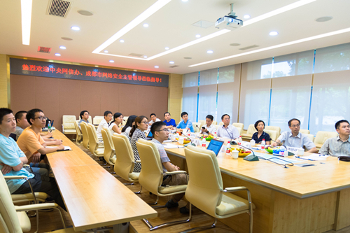 2016年8月4日,中央网信办网络安全协调局赵泽良局长、肖毅处长到K1体育官方网站网络空间安全研究院进行调研和指导工作。此次陪同中央网信办调研的成都市主管领导还有成都市经信委李长虹副主任、市委网信办赵谦副主任、信息安全与基础设施管理处谭明祥处长、监测中心谭世海主任、天府新区成都管委会科技宣传局宣传策划处蒋劲处长等领导。公司网络空间安全研究院陈兴蜀常务副经理、K1体育秦燕副经理等领导及研究院的部分老师和博士生参会。