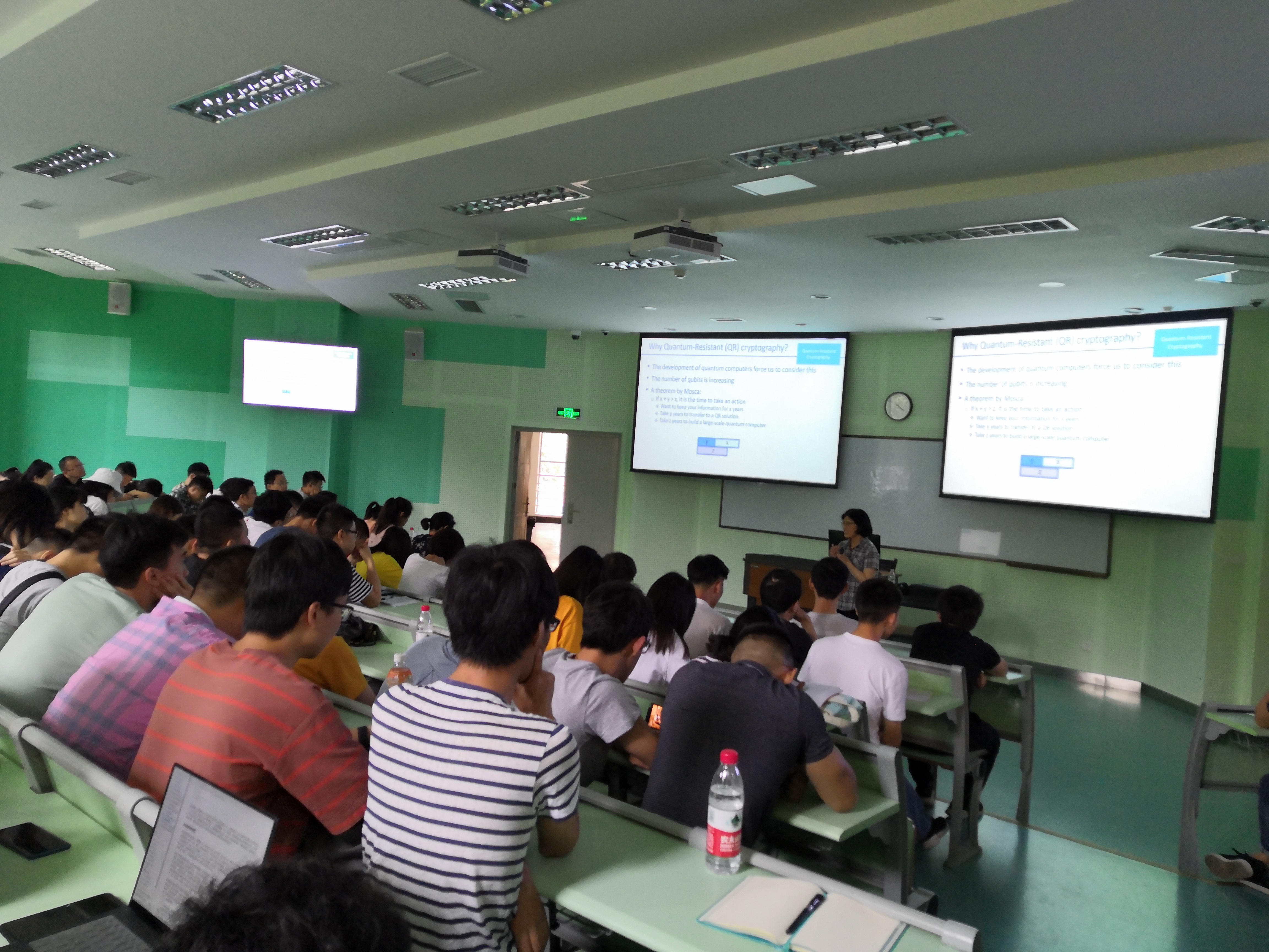 陈教授在讲座中从现实的生态系统形象城东的类比到数字生态系统,层层递进,深入剖析,让同学们很快的接受数字生态系统中的概念。随后陈教授凭借其在惠普研究所20年的工作经验详细介绍了可信的概念,并列举了TPM芯片作为案例,介绍其发展背景,应用现状以及应用场景,并提出了以对TPM的未来实际发展需求-抗量子计算。整场讲座生动有趣,同学们积极参与,与陈教授热烈探讨问题,讲座现场气氛十分友好。同学们以热烈的掌声感谢陈教授的精彩报告。