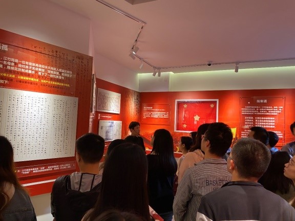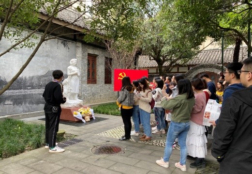 当日早上10:00,公司领导和研究生党员在江姐纪念馆门前集合后一同入馆。一进门,江姐的雕塑肃然在前,她手捧着一本教材,面色从容自信,让我们瞬间感受到了江姐的光辉形象。