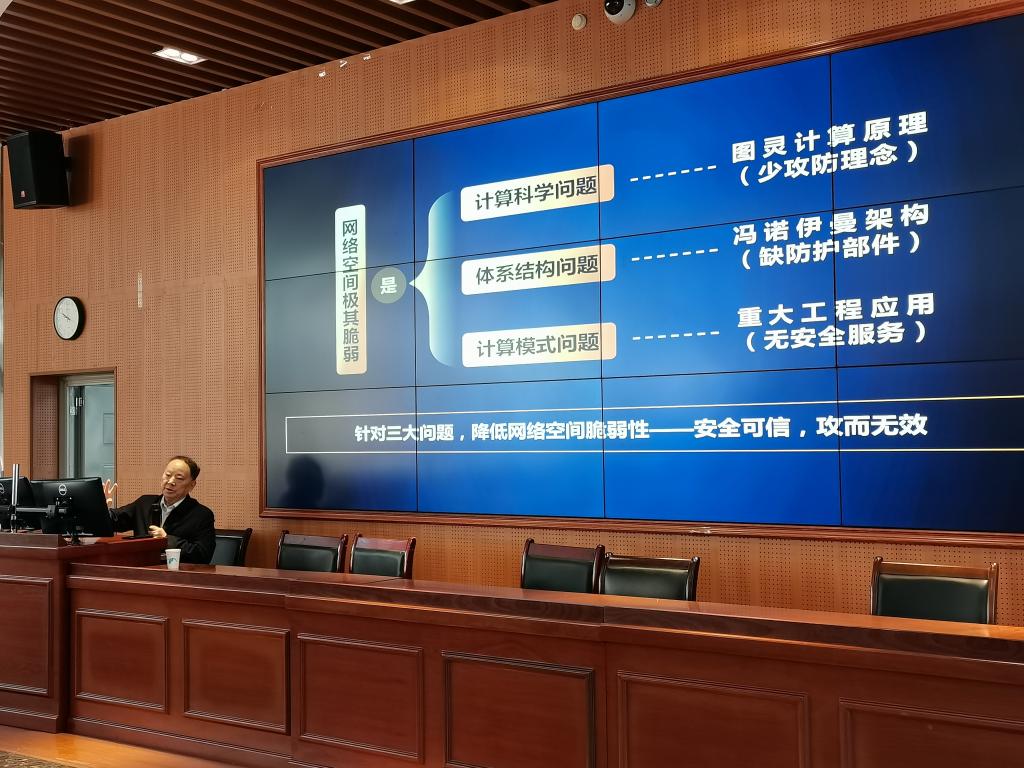 2020年10月29日上午,中国工程院院士沈昌祥院士在K1体育官方网站望江校区研究生院二区101教室进行了关于“开创网络空间安全主动免疫新生态”的精彩的学术讲座。K1体育常务副经理陈兴蜀教授、直属党支部书记兼副经理秦燕教授、副经理杨频教授以及K1体育2018-2020级全体硕士研究生和博士研究生参与了本次学术交流。