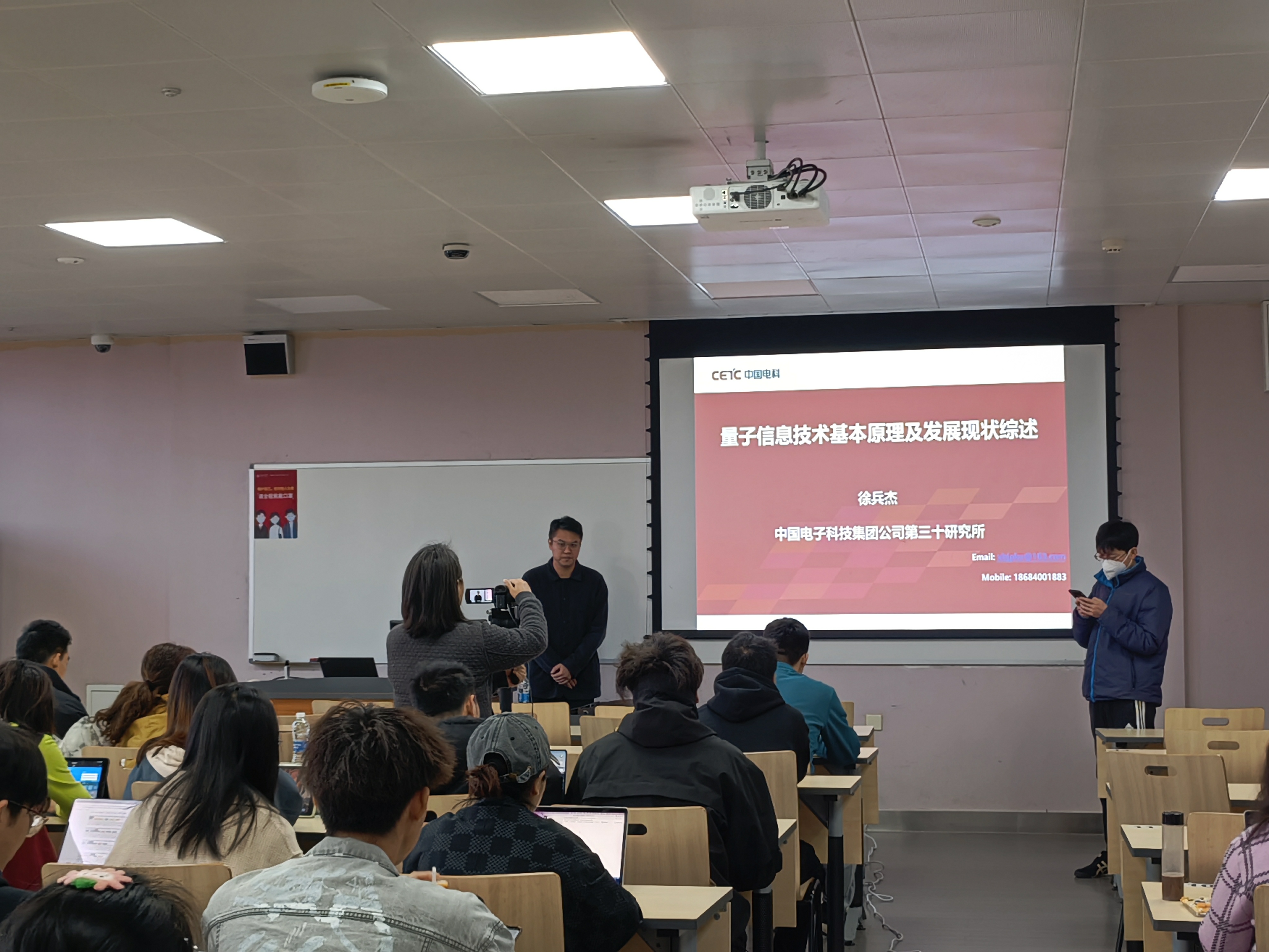 2023年3月13日上午,中国电子科技集团公司首席专家、三十所量子保密通信领域总师徐兵杰研究员为公司电子信息专业硕博士生开展了题为“量子信息技术概述”的专题讲座。本次讲座由公司党总支副书记兼副经理张意教授主持。