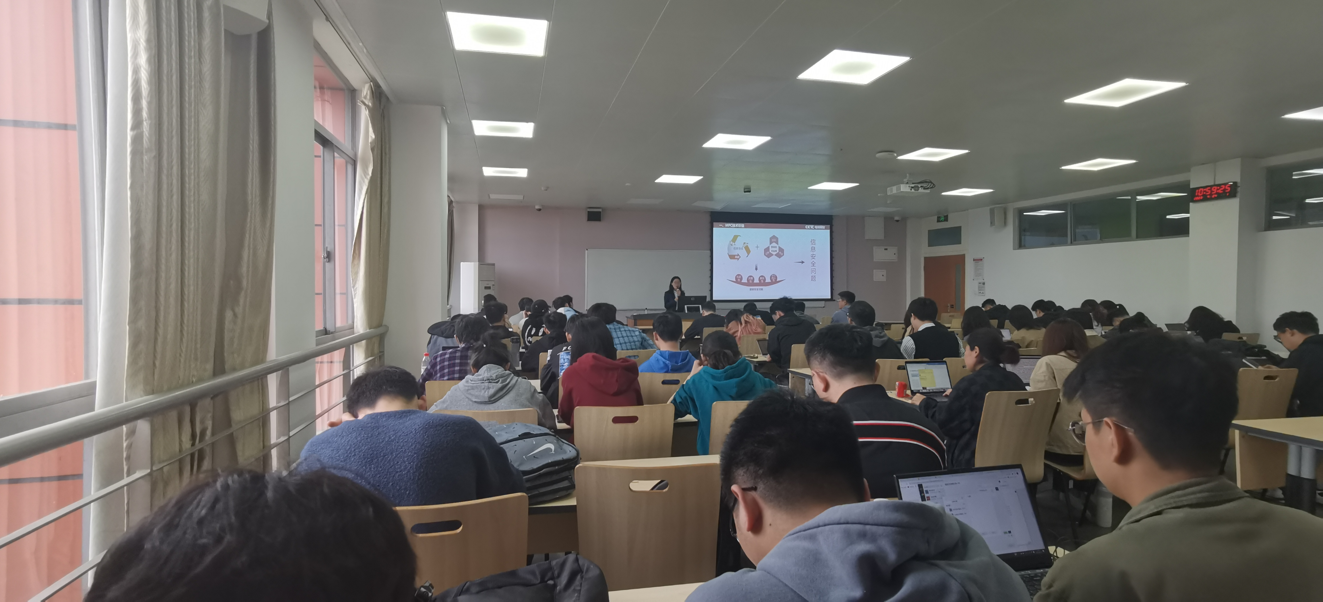 张老师认为目前不同厂商隐私计算平台和产品所采取的架构和技术路线存在诸多不同,导致数据无法互联互通,这将会导致新的“数据孤岛”问题。张老师针对报告主题与同学们进行了深入的探讨和互动,加深了同学们对多方安全计算技术的认识,同学们纷纷表示在本次讲座中收获良多,在同学们热烈的掌声中,本次讲座圆满结束。
