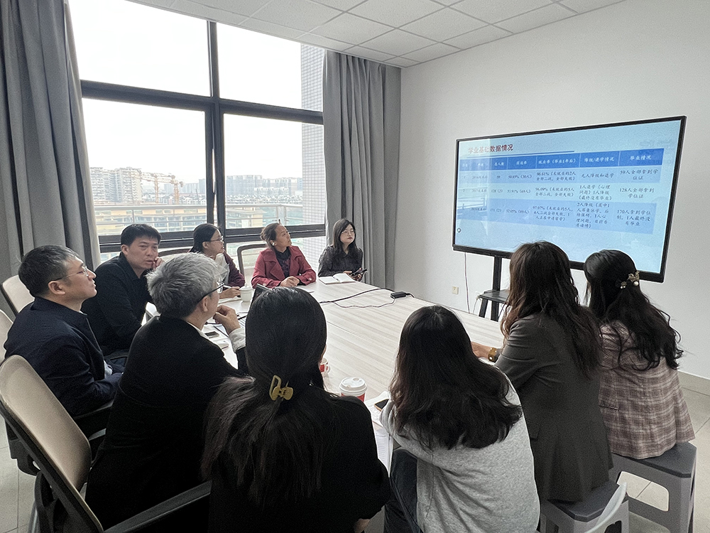 杨经理首先对教务处同志的到来表示热烈欢迎,并请黎老师介绍了公司从建院以来历届本科生的学业情况,公司精准把握每个员工的各方面情况,抓住员工工作中的关键环节,通过专业老师、助教反馈,期中考试等,及时发现问题员工并提前帮扶。开展院级学业帮扶工作,数学考试期末考前辅导、寒暑假帮扶补缓考员工,给问题员工制定周计划,在公司还开展学风引领计划、榜样引领计划等,建设院风学风。公司还形成了学工和教务良好互动机制,共同助力员工成长。