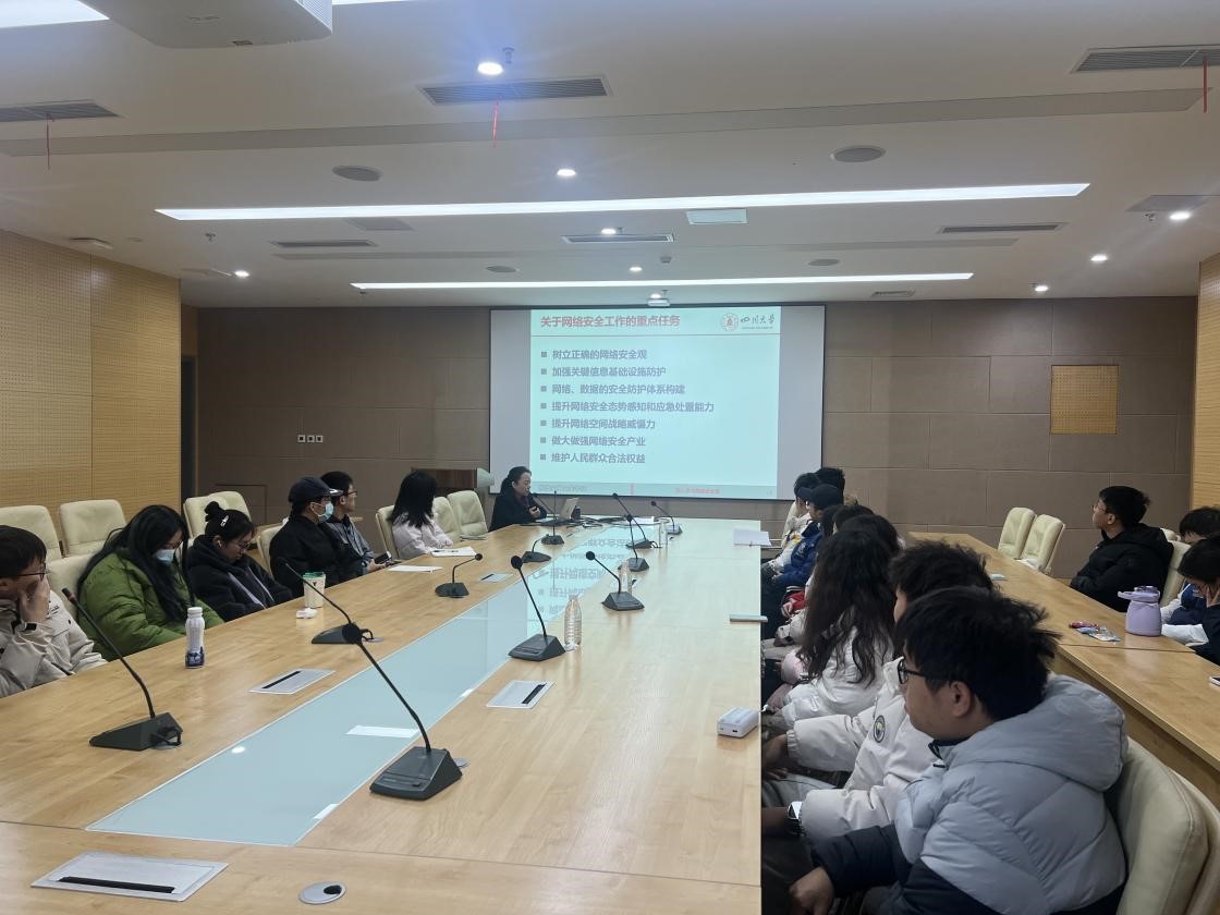 为深入贯彻党中央关于网络强国的重要思想,大力推动网信事业高质量发展,提高实战能力,2023年12月22日,支部于K1体育官方网站江安校区多学科交叉大楼1020室开展了《学习习总书记网络安全重要指示,努力学习提升实战能力》的主题党课学习活动,本次党课荣幸的邀请到了K1体育、K1体育官方网站网络空间安全研究院经理陈兴蜀教授做主讲。本次党课活动由隋文馨老师主持,K1体育硕士研究生第二党支部全体党员参会。