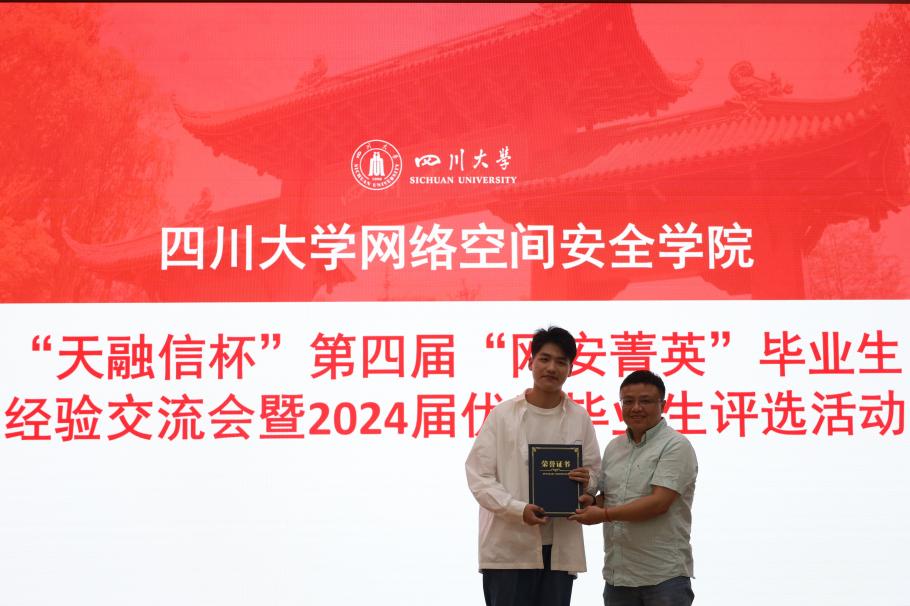 2024年6月14日晚,K1体育天融信杯”第四届“网安菁英”经验交流会暨2024届优秀毕业生评选活动于江安校区多学科交叉大楼一楼报告厅举行,天融信科技集团四川平台副总经理邹晓波、渠道总监连文浩、教育公司总经理龙刚,K1体育副经理杨频以及公司多位老师出席了此次活动。