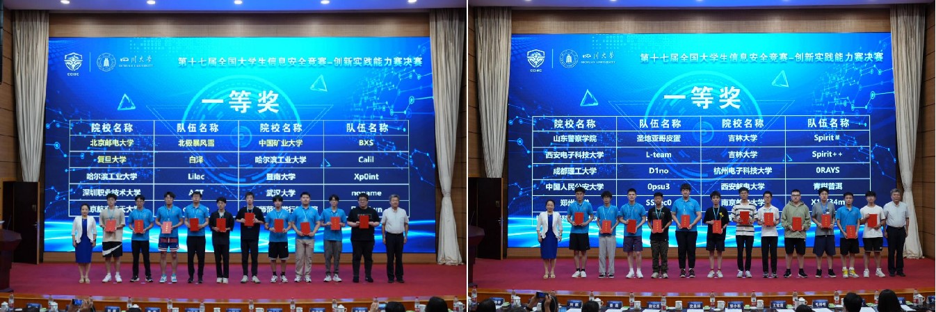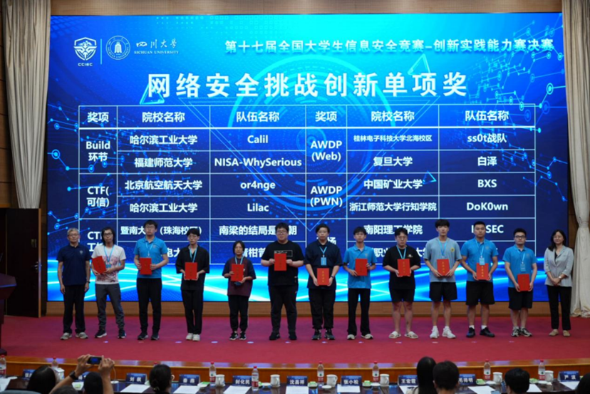 经过两天的激烈角逐,共产生全国一等奖22名、二等奖24名、三等奖33名。此外,组委会根据各个分赛项比赛情况,授予12支队伍网络安全挑战创新单项奖。