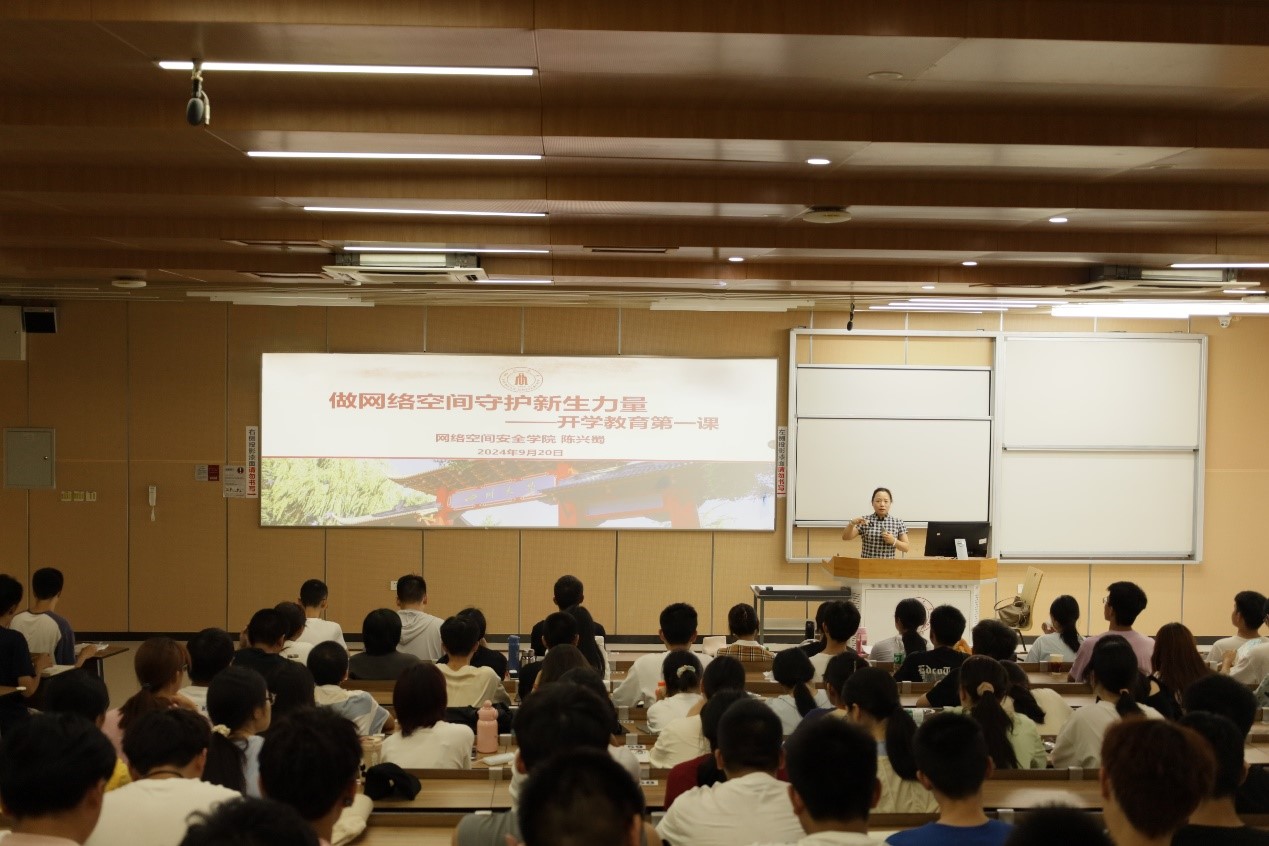 2024年9月20日下午,K1体育2024级新生第一课在江安校区综合楼C306顺利开讲。K1体育经理陈兴蜀教授以“做网络空间守护新生力量”为主题,带来了新生开学教育第一课。