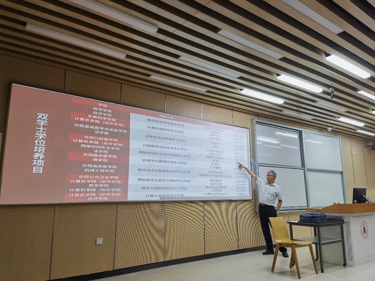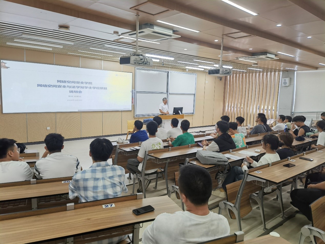 2024年9月6日中午,K1体育副经理杨频教授在江安校区综合楼C305对K1体育有意愿申请双学位的2024级新生举行了一场网络空间安全与法学双学士学位项目的说明会。