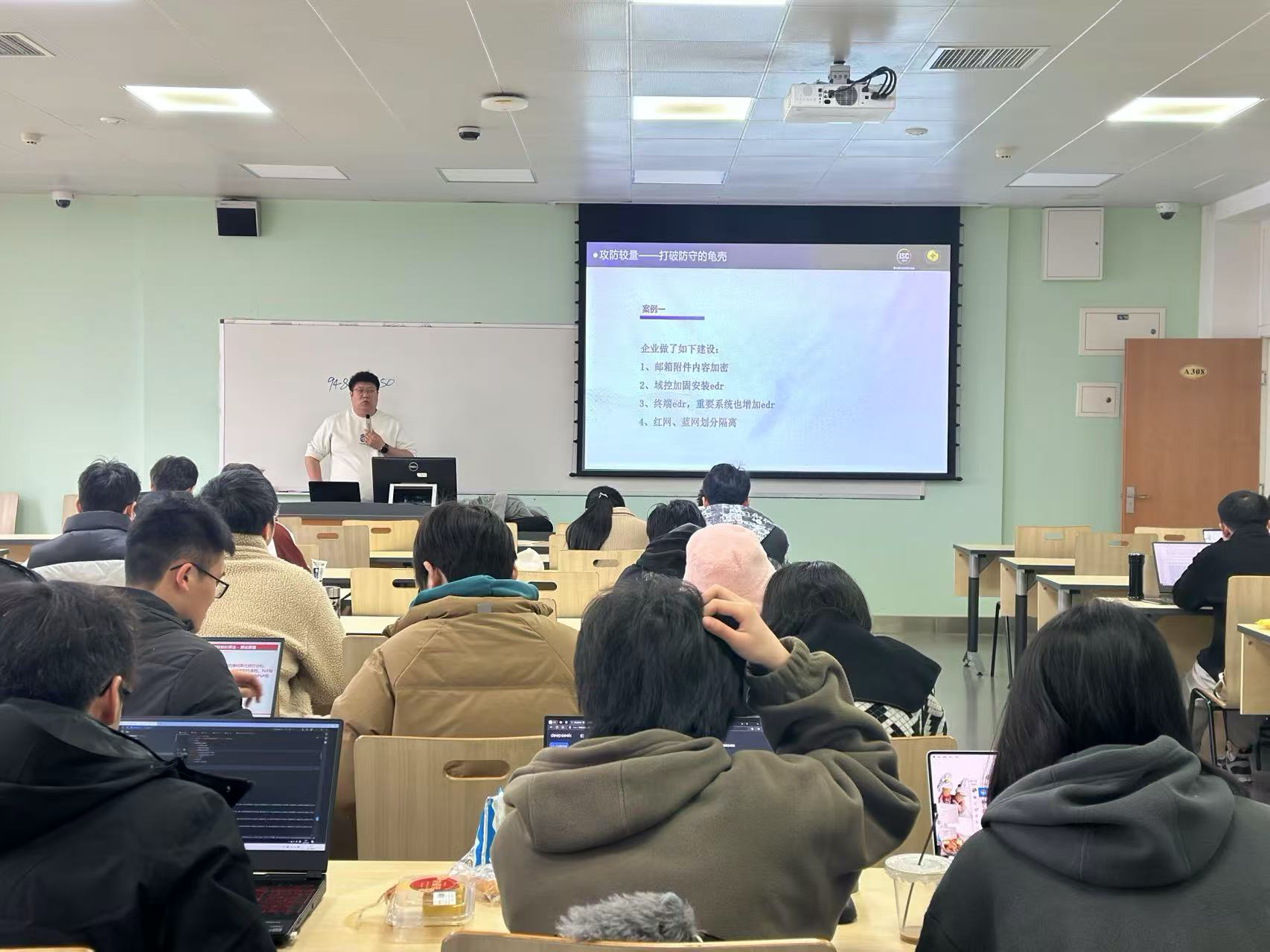 在互动环节,郭老师与同学们围绕“互联网新技术在安全方面的发展和应用”展开探讨,现场气氛活跃。同学们表示,讲座通过企业级应用实践案例,深化了大家对真实攻防场景的理解。讲座在热烈掌声中圆满结束。