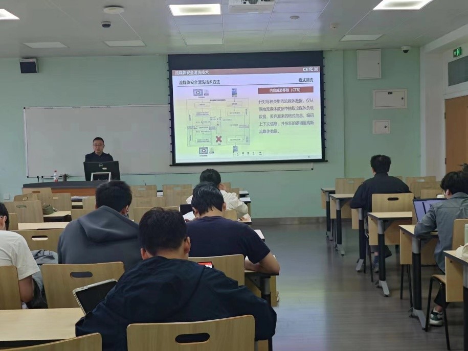 近期中国电子科技集团公司第三十研究所首席专家姜永广老师为公司电子信息专业学位硕博士生开展了题为“流媒体安全防护技术”的专题讲座。本次讲座由公司党总支副书记兼副经理张意教授主持。
