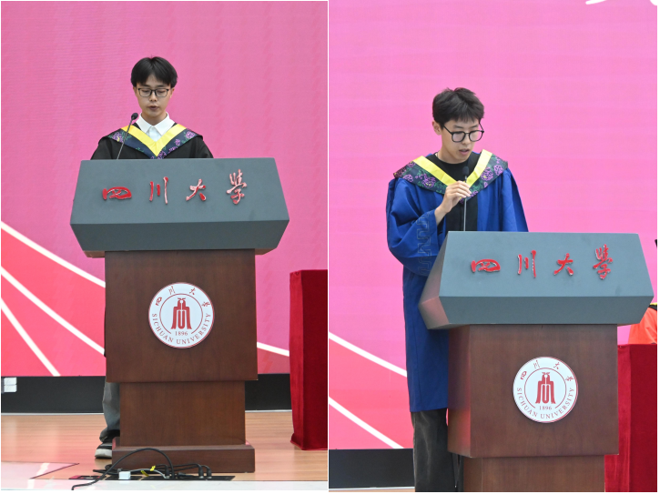 图4 本科毕业生代表张高淞(左)、研究生毕业生代表王楠楠(右)