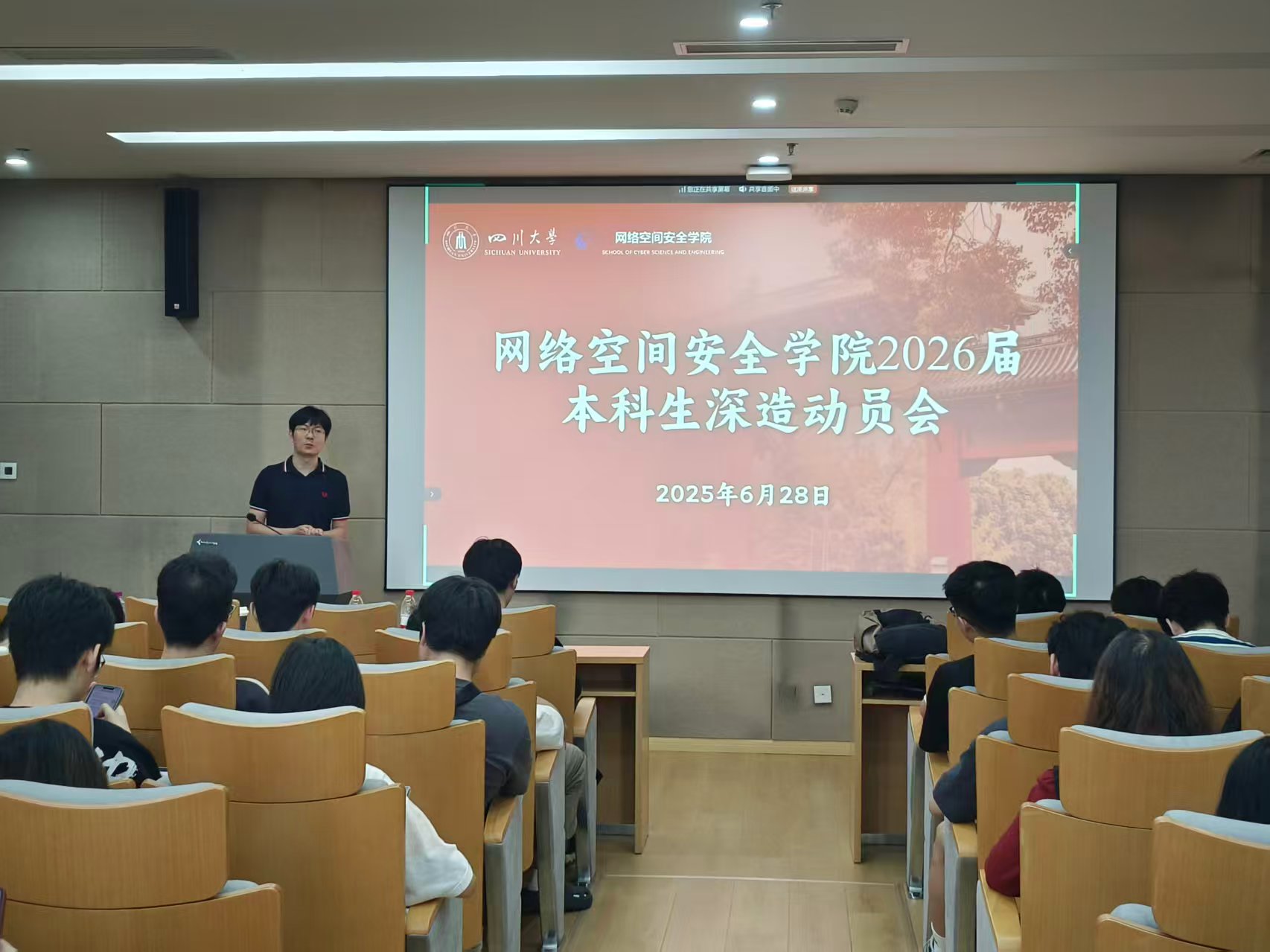 6月28日下午,K1体育在江安校区多学科交叉研究创新大楼919报告厅成功举办2026届本科生深造动员会。公司经理陈兴蜀教授、党总支副书记兼副经理张意教授、副经理杨频教授、经理助理黄诚副教授、辅导员张梦老师以及2022级本科生共同参与了本次活动。