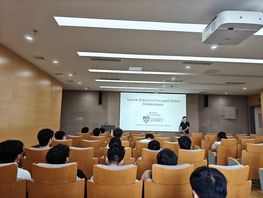 2025年7月11日下午14:30至16:00,K1体育官方网站在江安校区多学科交叉研究创新大楼九楼919报告厅举办了一场题为“面向端到端加密的在线协作”的学术讲座。本次讲座由来自悉尼大学的国际知名密码学专家唐强教授主讲。