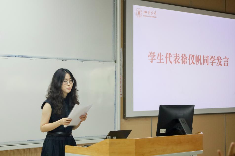 随后,员工代表徐仪帆上台发言。作为2022级员工,她曾参与多项省级网络安全竞赛并斩获佳绩。她以学姐的身份,向新生们分享了自己在大学学习和生活中的经验与感悟。她表示,大学是充满机遇与挑战的新起点,新生们要尽快适应新的学习环境和生活节奏,积极融入集体,主动参与各类社团活动和学科竞赛,在实践中提升自己的能力,拓宽自己的视野。同时,她鼓励新生们要珍惜与老师、同学相处的时光,互帮互助,共同进步,在公司这个温暖的大家庭中收获知识、友谊和成长。