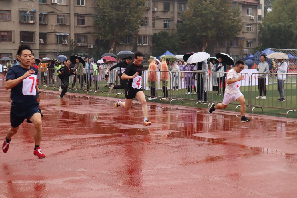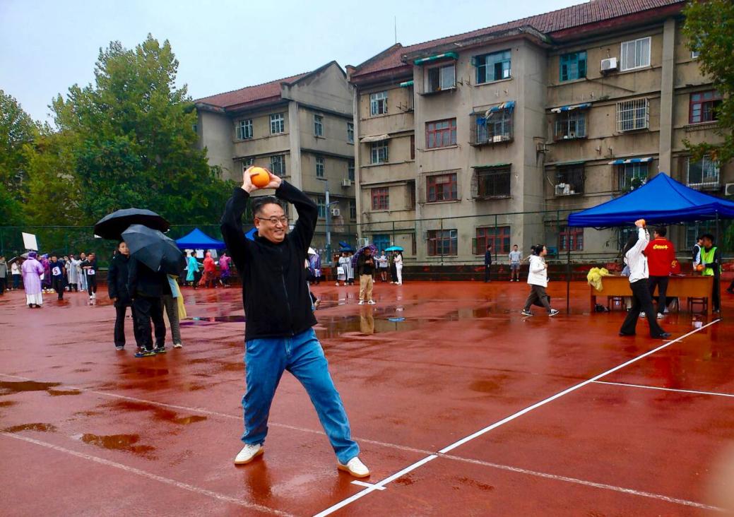运动场上每一位参赛老师都以昂扬的姿态,在属于自己的赛道上绽放风采,用汗水与拼搏诠释着体育竞技的生动内涵:径赛项目的参赛老师足下生风,纵情奔跑,在雨中依旧闪耀出速度与激情的光芒;田赛项目的参赛老师有的展示脚下蓄势,身影凌空,奋力跳远让力量爆发,有的双手凝力,奋力一掷,沉重的实心球飞出坚毅与力量;趣味团体项目的参赛老师在跳长绳中诠释绳舞如龙,步伐如风;在抛球入筐项目用每一次投掷接球展现协作的默契;也在绕杆射门项目里脚下生花,精准一击定格胜利瞬间。在这些项目中,绕杆射门还收获了第九名的好成绩。这场雨中的竞技,不仅展现了老师们课堂之外的别样风采,更让我们看到了团队协作的力量和永不言弃的体育精神。