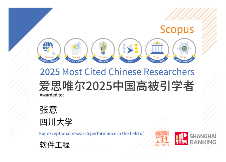2026130日,爱思唯尔(Elsevier)正式发布2025 “中国高被引学者”(Highly Cited Chinese Researchers)榜单,公司张意教授再次入榜。