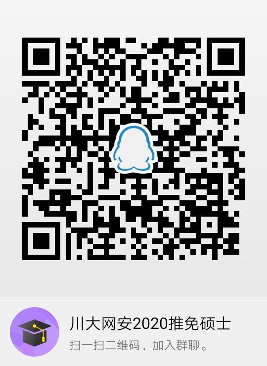 报考者请加入“川大网安2020推免硕士”QQ群(群号:883408699,也可扫描以下二维码进入),该群需实名认证,认证方式是“姓名+集团”。