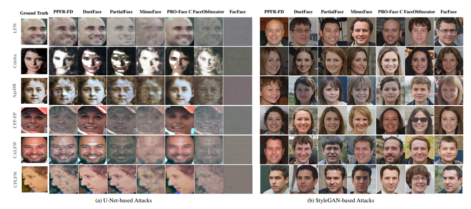 图2. 基于U-Net 和 StyleGAN 攻击的面部重建漏洞评估