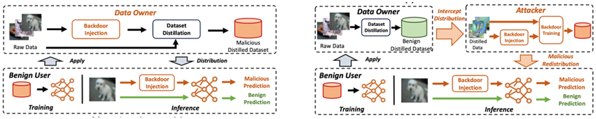 然而,研究发现,数据集蒸馏方法在生成合成数据的过程中容易受到后门攻击的影响。但早期的威胁模型普遍假设攻击者能够访问蒸馏过程以及原始数据。本工作提出了一个更为严格的攻击假设:攻击者无法获取蒸馏过程、原始数据、下游模型,以及下游的训练策略。在这一更具挑战性的假设下,该工作仍然证明攻击者在某些场景中能够在不到一分钟的时间内成功注入后门。