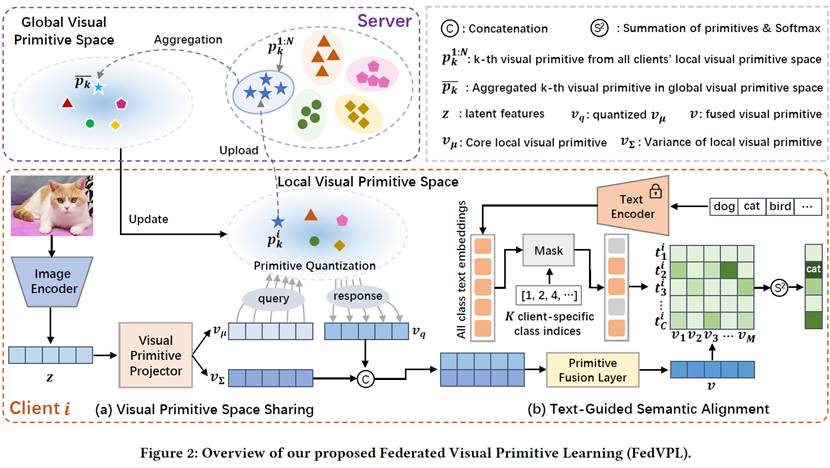 近日,公司张意教授团队在个性化联邦学习领域取得了重要进展,研究成果《Beyond Class Boundaries: Federated Visual Primitive Sharing with Text-Guided Adaptation》成功被互联网领域的国际顶级会议The Web Conference 2026 (WWW 2026)接收。公司2024级博士生黄永强为第一作者,张意教授为通信作者,合作团队包括K1体育与计算机公司,其中K1体育为该成果的第一单位。