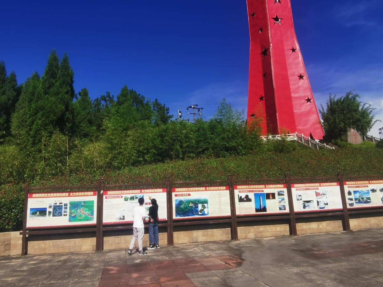 游览完红军文化园后,团队来到了红星公园,尽管烈日炎炎,但丝毫没有影响大家的激情。大家热情高涨,爬上了红星公园的长梯,看到了壮观的红星塔。并参观学习了园内的宣传栏大报。