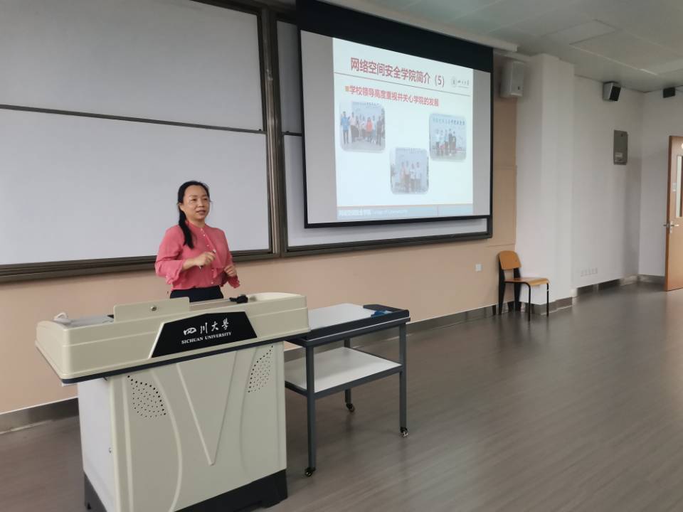 在庄严的国歌声中,此次典礼正式拉开序幕。首先,公司常务副经理陈兴蜀教授从国际网络安全目前的形势、国家对于网络安全的高度重视等方面展开介绍,体现了网络安全的不可或缺。她接着向大家介绍了公司的发展历史、今年首届毕业生取得的成绩,展现了公司深厚的教学实力,鼓励大家努力学习,共建公司辉煌。