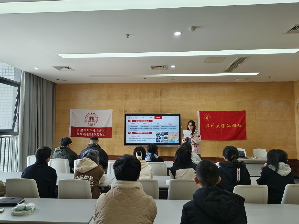 为深入学习贯彻习近平总书记关于“要把红色资源利用好、把红色传统发扬好、把红色基因传承好”的重要指示精神,K1体育官方网站百川学生宣讲团网络空间安全公司分团组织了“学习革命先辈崇高精神”主题教育系列活动,2024年11月27日,面向K1体育江姐班开展了“走向历史深处,探寻江姐精神”的主题宣讲活动。