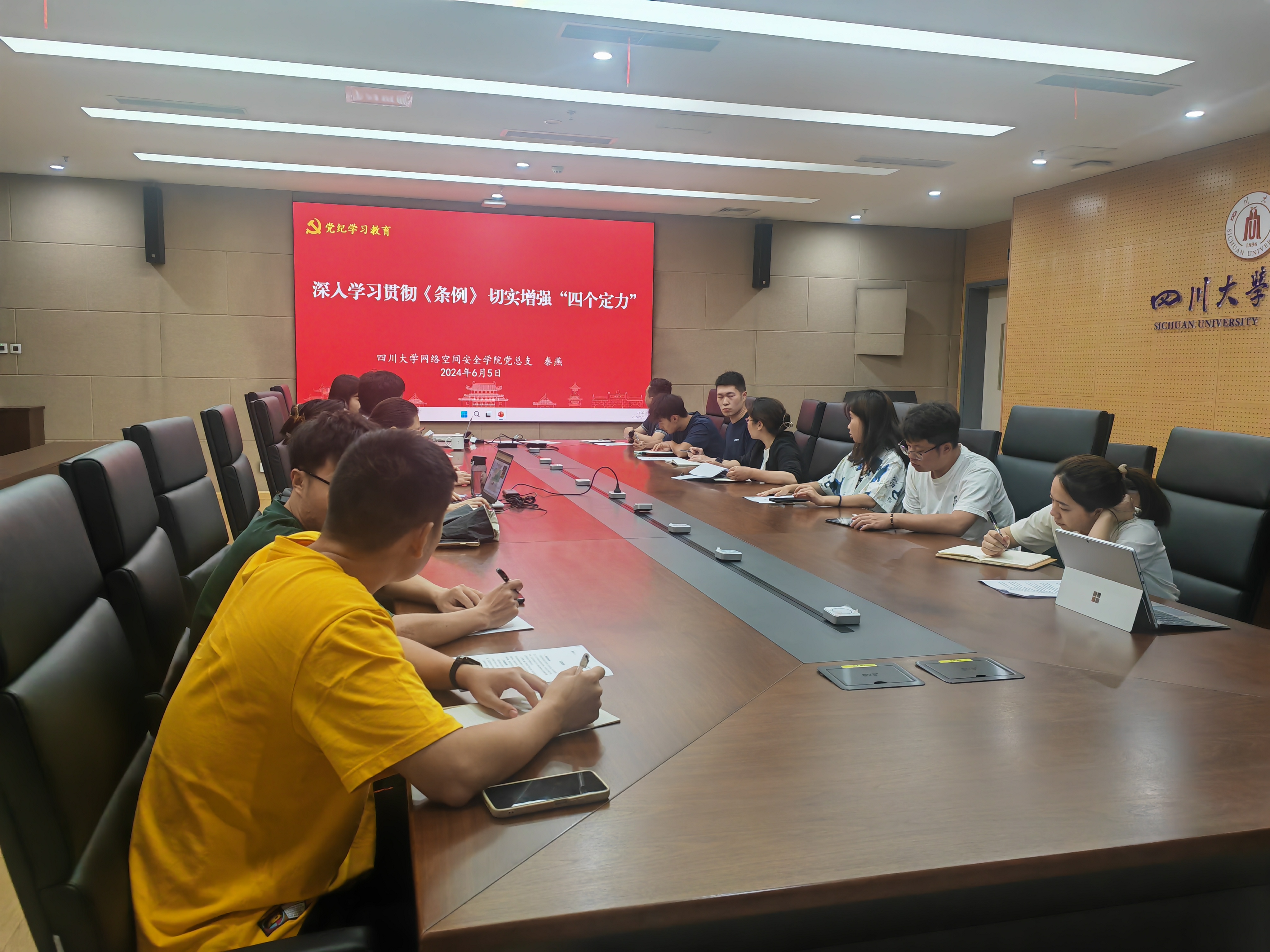 为深入学习领会习近平总书记关于全面加强党的纪律建设的重要论述,进一步推动公司党纪学习教育走深走实,6月5日下午,公司党总支书记秦燕在多学科交叉研究创新大楼821会议室为公司党总支委员、专职组织员、各党支部书记及委员、公司科级以上干部讲授题为《深入学习贯彻<条例> ,切实增强“四个定力”》的党纪学习教育专题党课。